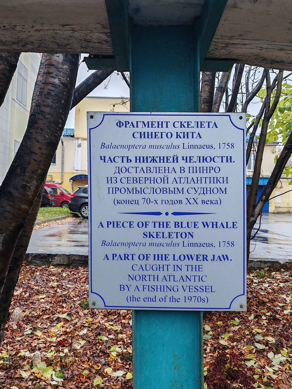 В Мурманске, на улице Академика Книповича, 4, находится уникальная кость нижней челюсти кита. Она расположена на территории ПИНРО им. Н.М. Книповича. Хотя территория огорожена, вы можете увидеть этот редкий экспонат через решетку.
