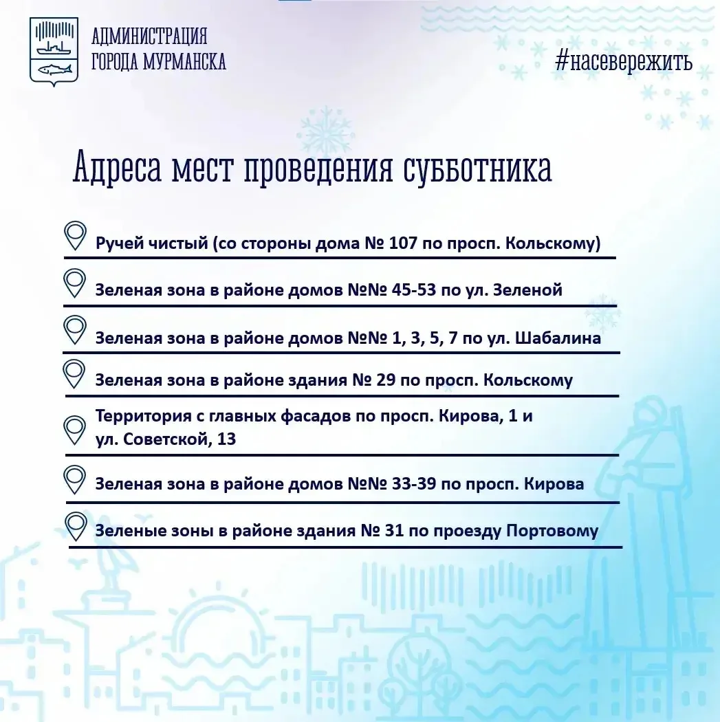 Завтра в 10:00 неравнодушные и активные мурманчане могут навести порядок на улицах, зеленых зонах и общественных пространствах родного города.