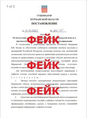 В редакции региональных СМИ спецслужбы Украины начали рассылку поддельного постановления якобы от имени губернатора Мурманской области Андрея Чибиса, касающееся ситуации на топливном рынке региона.Это – ФЕЙК! Помните, что распространение такой...