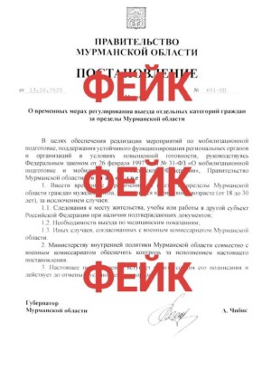 В социальных сетях распространяется поддельное постановление правительства Мурманской области.Это – ФЕЙК! Распространение такой информации – один из методов вражеского информационно-психологического влияния спецслужб Украины. Доверяйте...